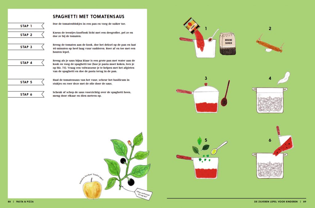 De recepten zijn voorzien van duidelijke en logische stappen, met hier en daar de aanwijzing om een volwassene er bij te betrekken. Voor elke stap een tekening om het nog duidelijker te maken en aangevuld met feitjes over het gerecht en de ingrediënten en een foto van hoe het eindresultaat er uit moet komen te zien. Een kind kan de was doen.