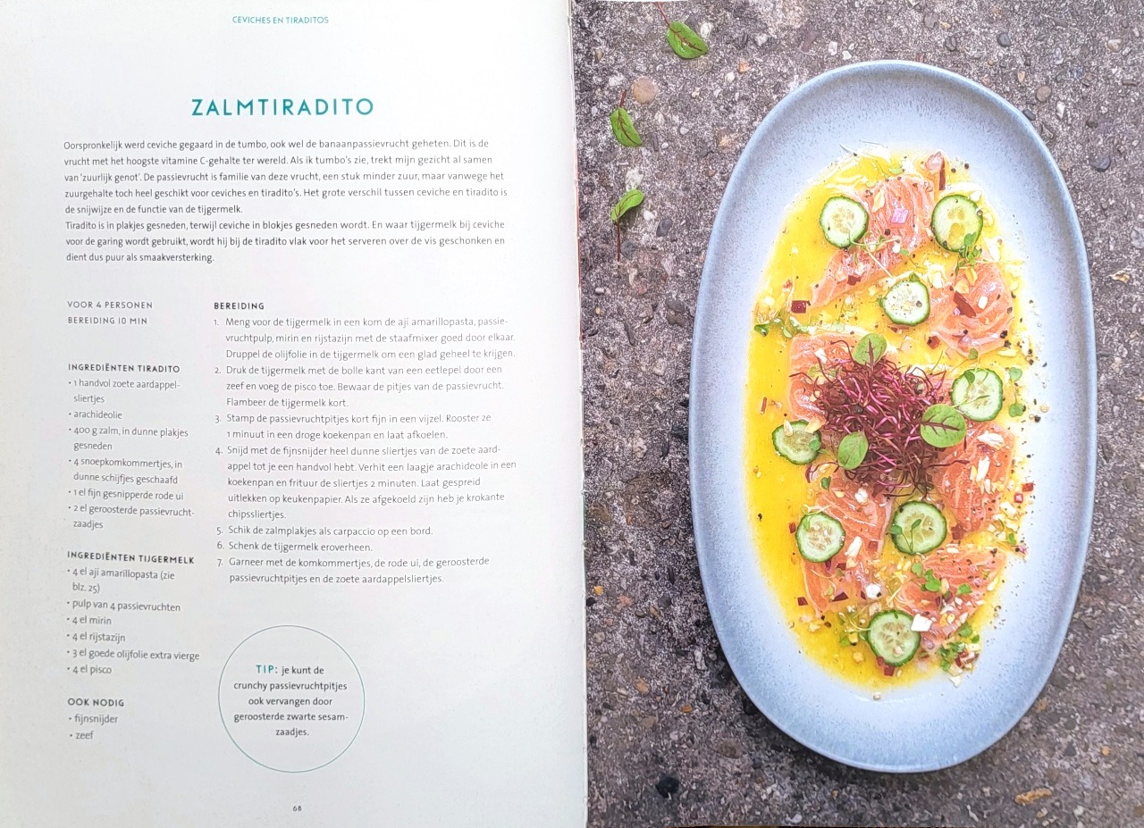De prachtige kleurrijke fotografie, heerlijke gerechten, goed geschreven recepten en omvangrijke informatie maken dit dan ook het perfecte kookboek om kennis te maken met de Peruaanse keuken óf om verder te gaan op het ingeslagen pad als je al eens aan de slag bent gegaan met Aji Panca, Aji Amarillo of Ceviche.